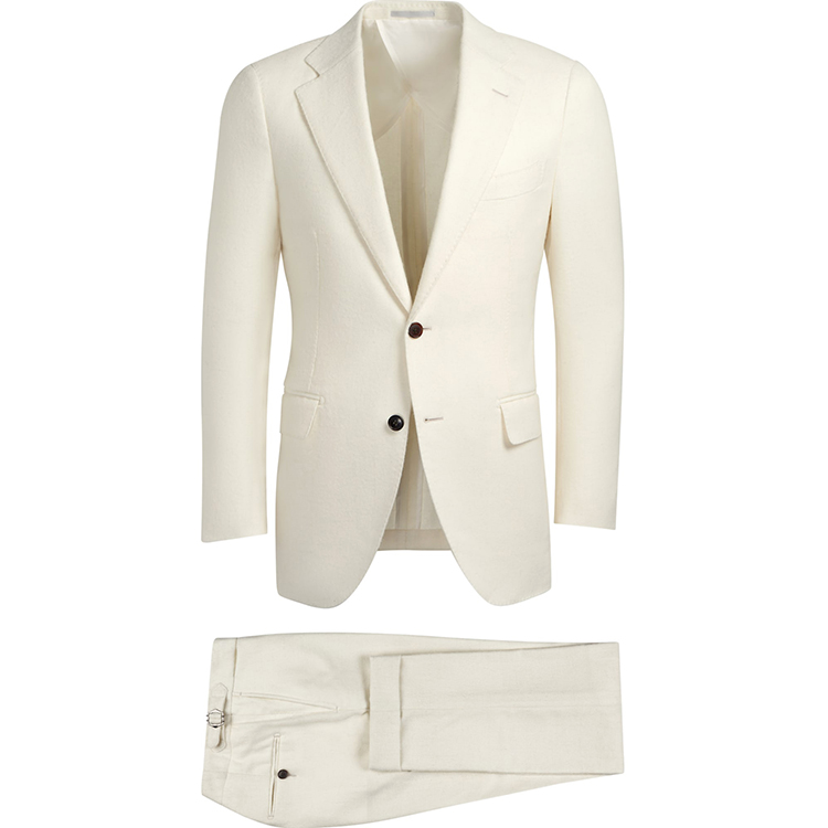 חליפה רשמית לבנה שמנת 100% צמר חצי בטנה