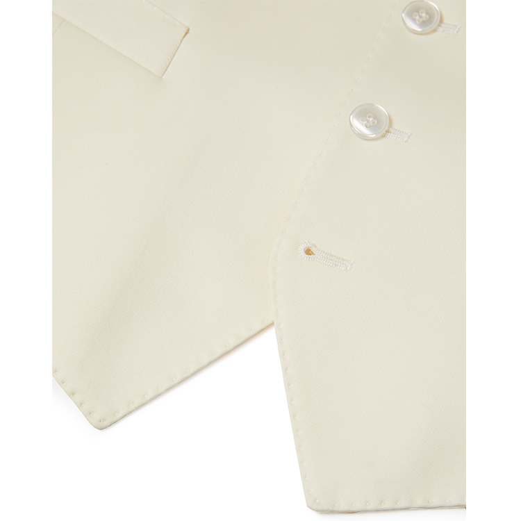 Waistcoat 1. Lapel:none 2. Pocket:single welt pocket 3. Closing:single-breasted, 6 buttons 4. Breast Pocket:none 5. Lining:polyester 6. Characteristic:noble pure style, nice texture, well fitted