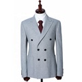 גברים צמר באיכות גבוהה כפול חזה Slim Fit חליפת עסקים עיטור כפתור גבוה עובי דק1